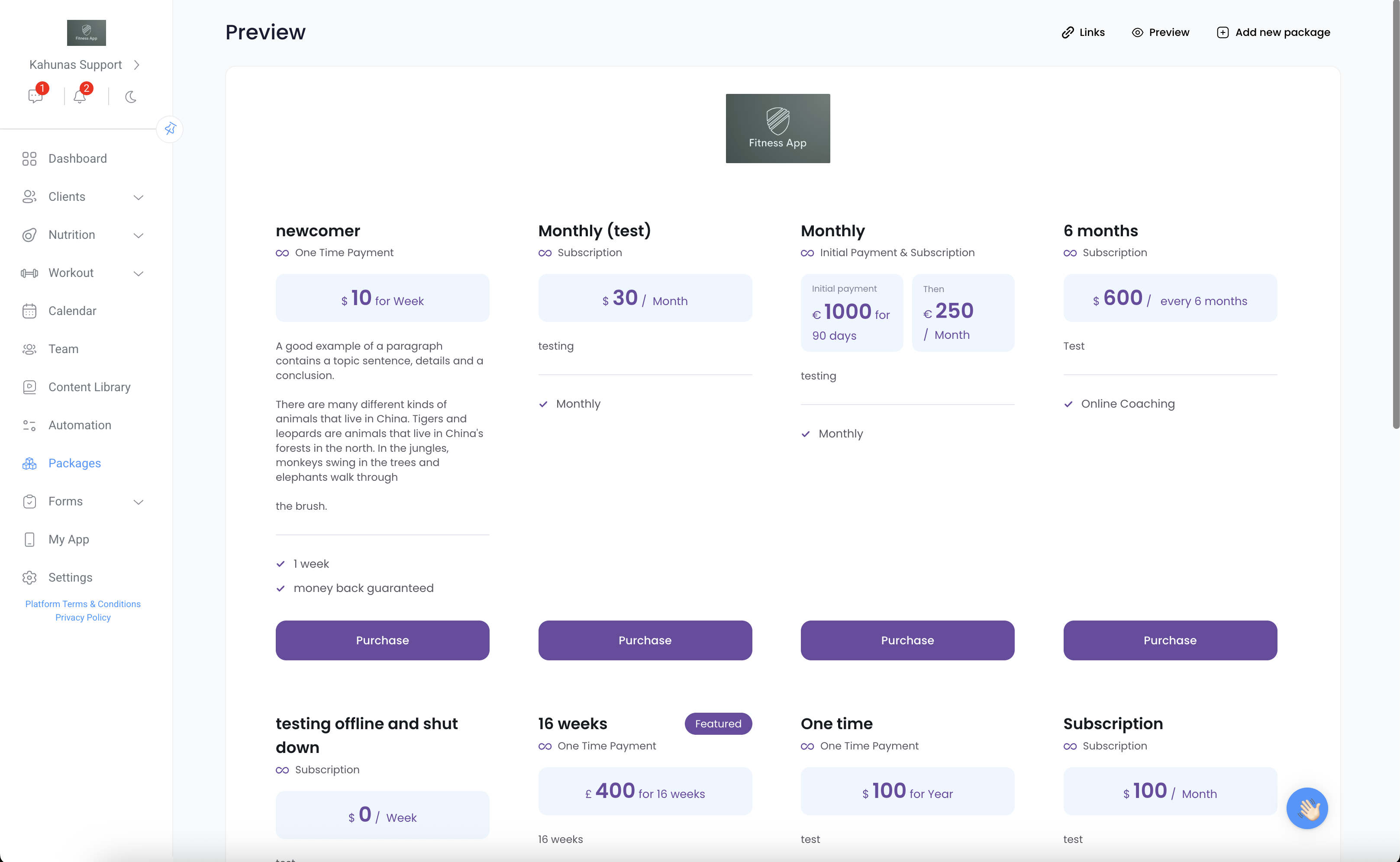 You can simply copy and paste your package link and send it to your client. Once they open it, they’ll see your full list of packages, choose the one they want, click “Purchase”, and then proceed to register and make the payment.